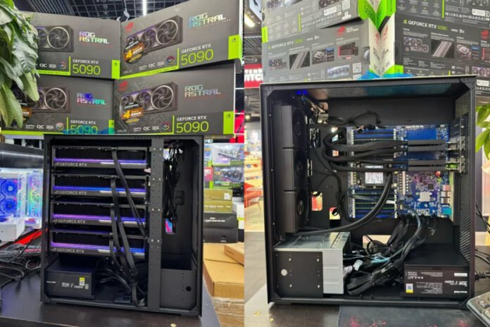 Четыре RTX 5090 и два БП по 2400 Вт: энтузиаст собрал сверхмощный ПК, но не играет на нем